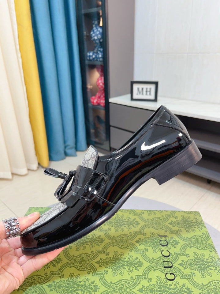 GG Men's Tassel Loafer Black Canvas Cowhide 330398