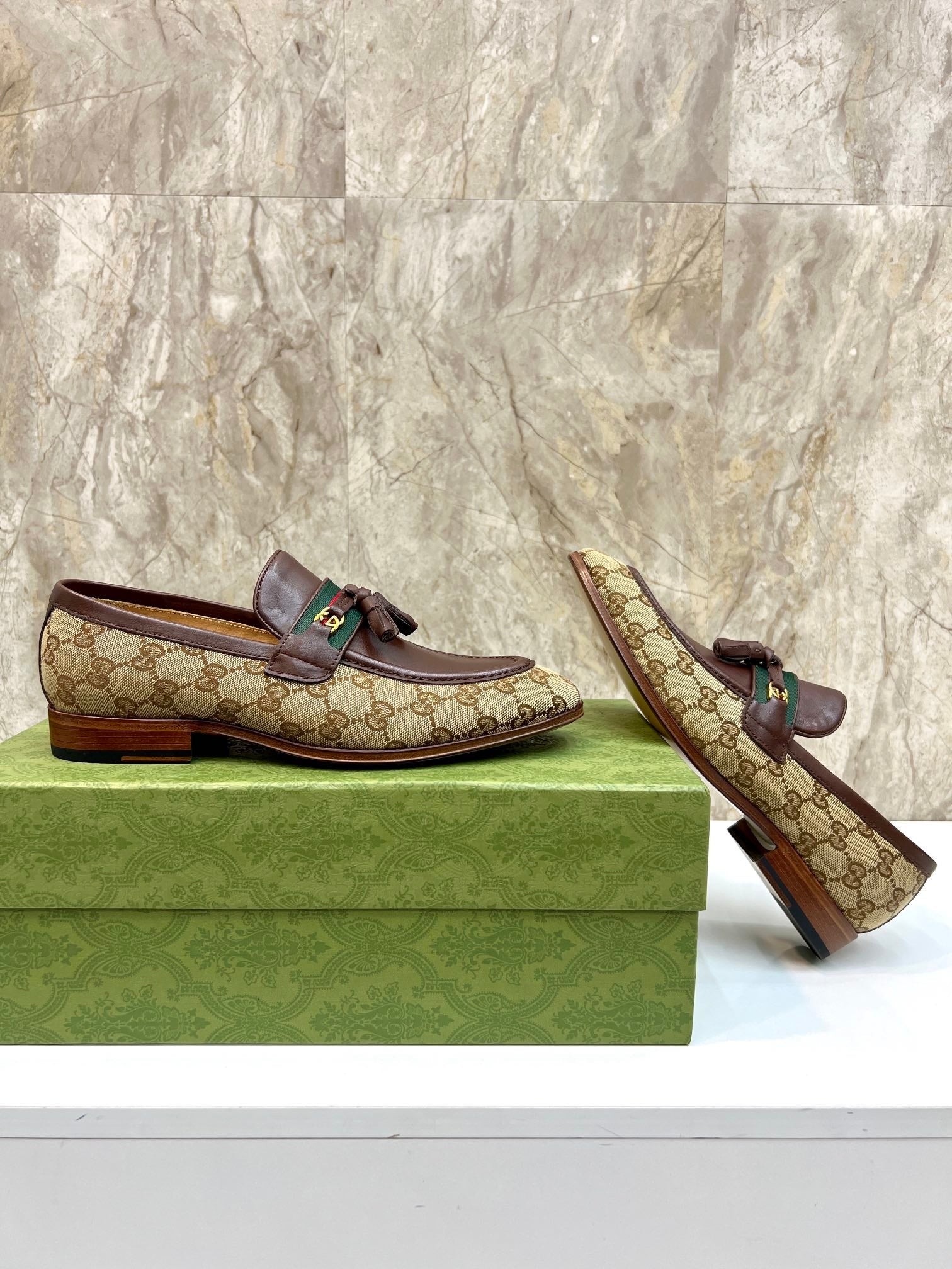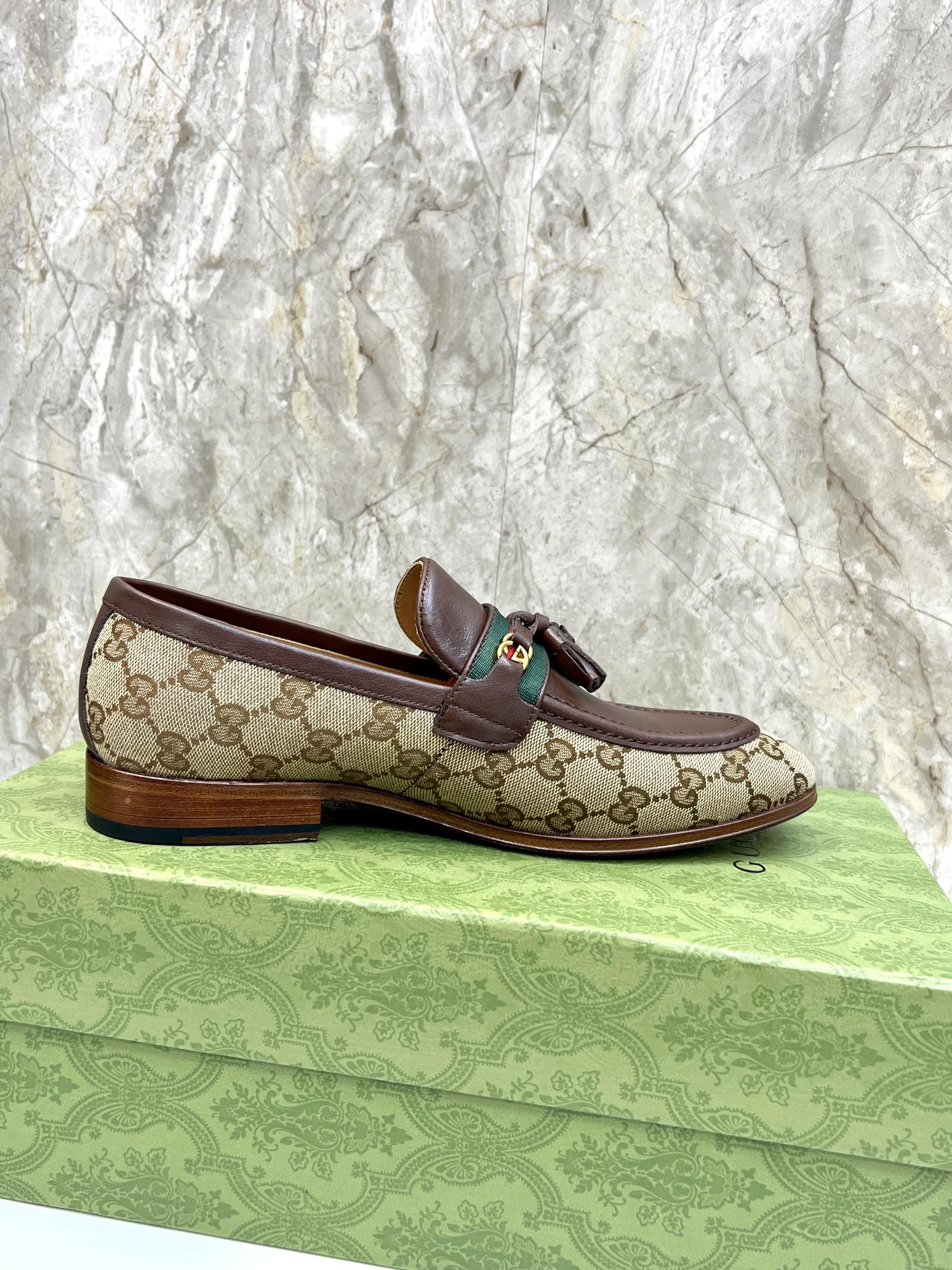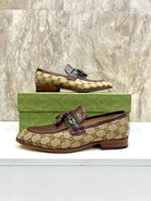 GG Men's Tassel Loafer Brown Cowhide Canvas 548740