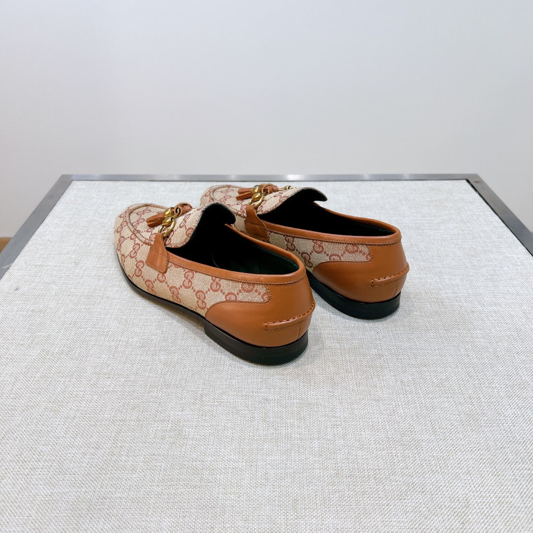 GG Men's Tassel Loafer Pink Canvas Calfskin 361365