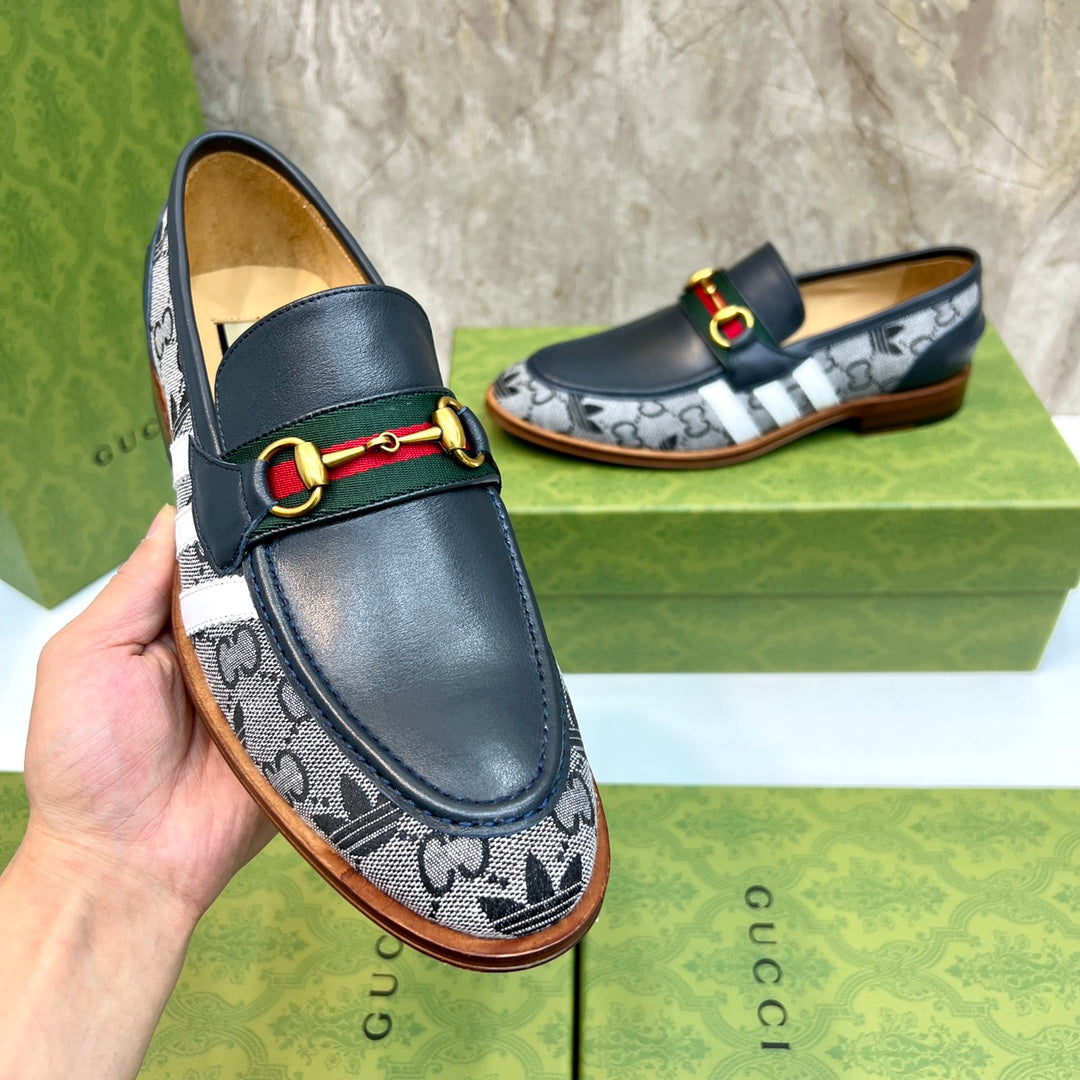 GG x Adidas Men's Loafer Black Canvas Cowhide 724879