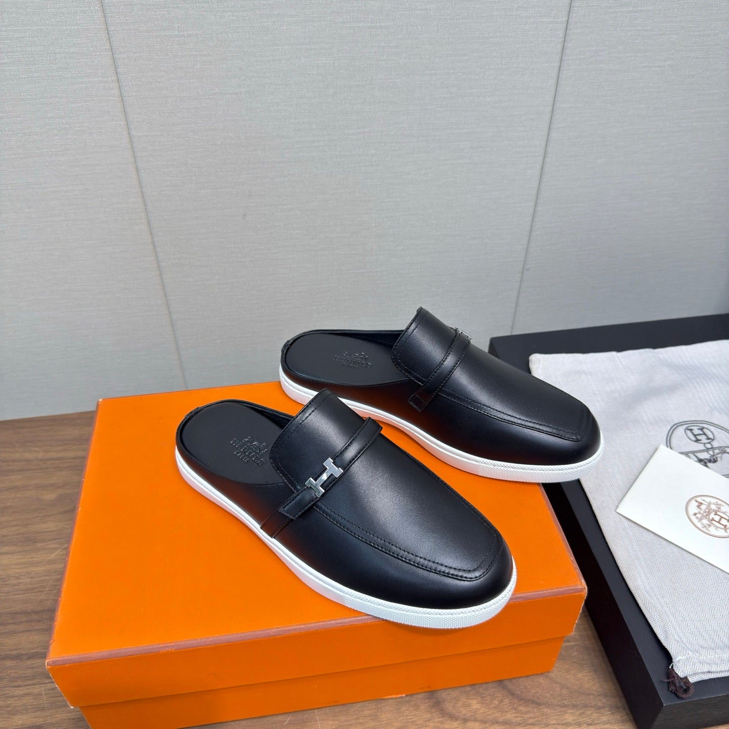 HM 25s Like Mule Black Lambskin Rubber 465666