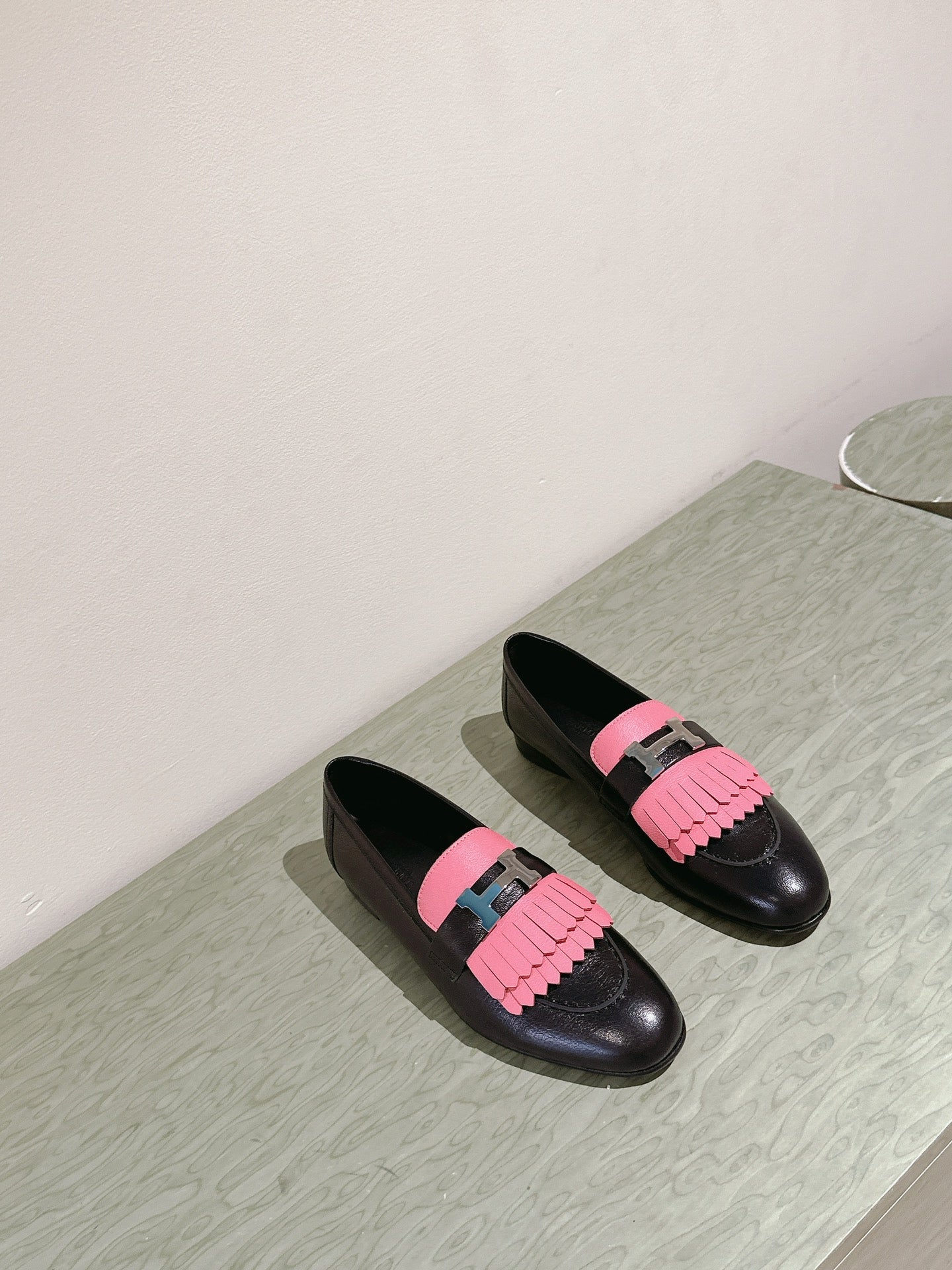 HM Mocassins Royal Loafers Black PInk Sheepskin 445011