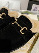 HORSEBIT MULE IN BLACK SUEDE AND FLEECE LINING