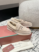 LP Summer Charms Walk Loafers In Light Brown Beige Suede With Rabbit Fur Lining 985651