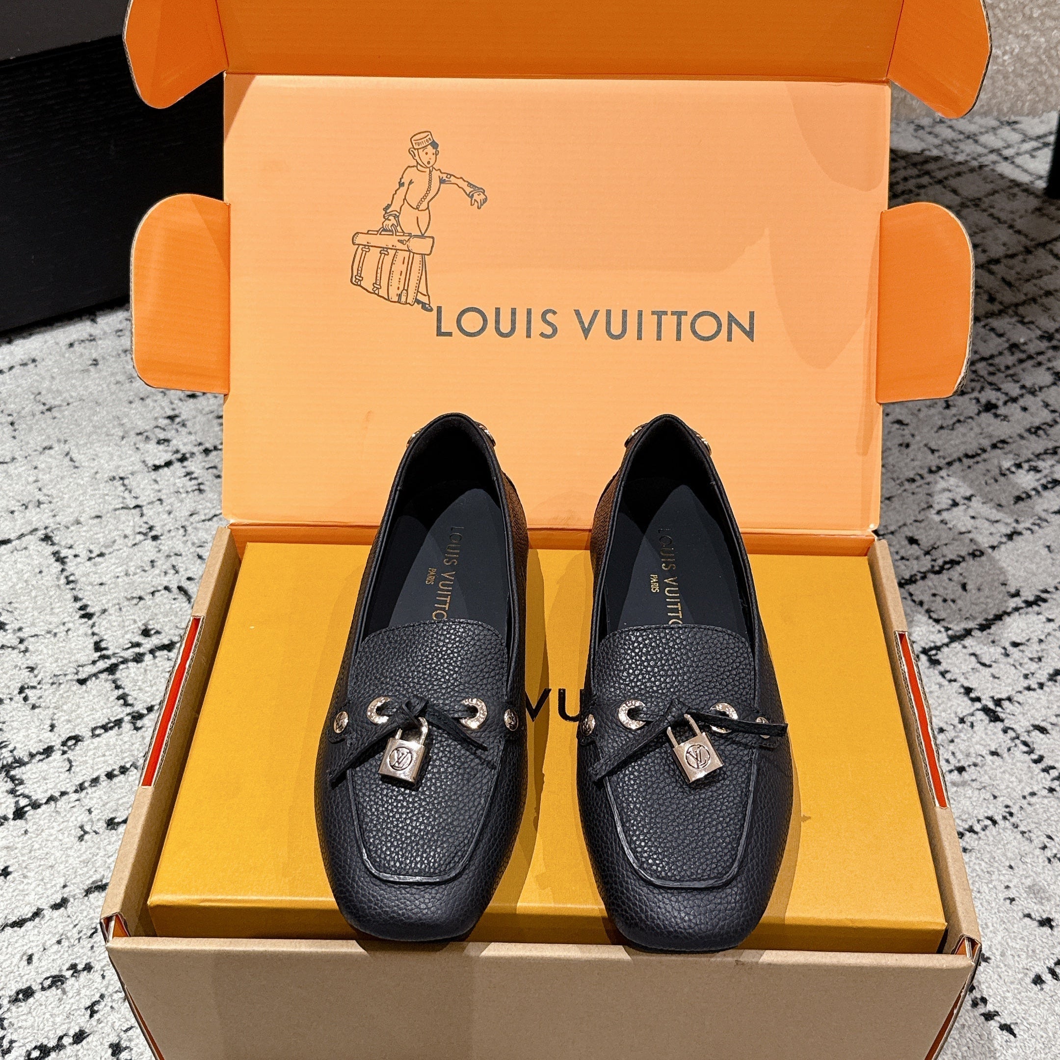 LV Flat-soled lock loafers black cowhide 383377