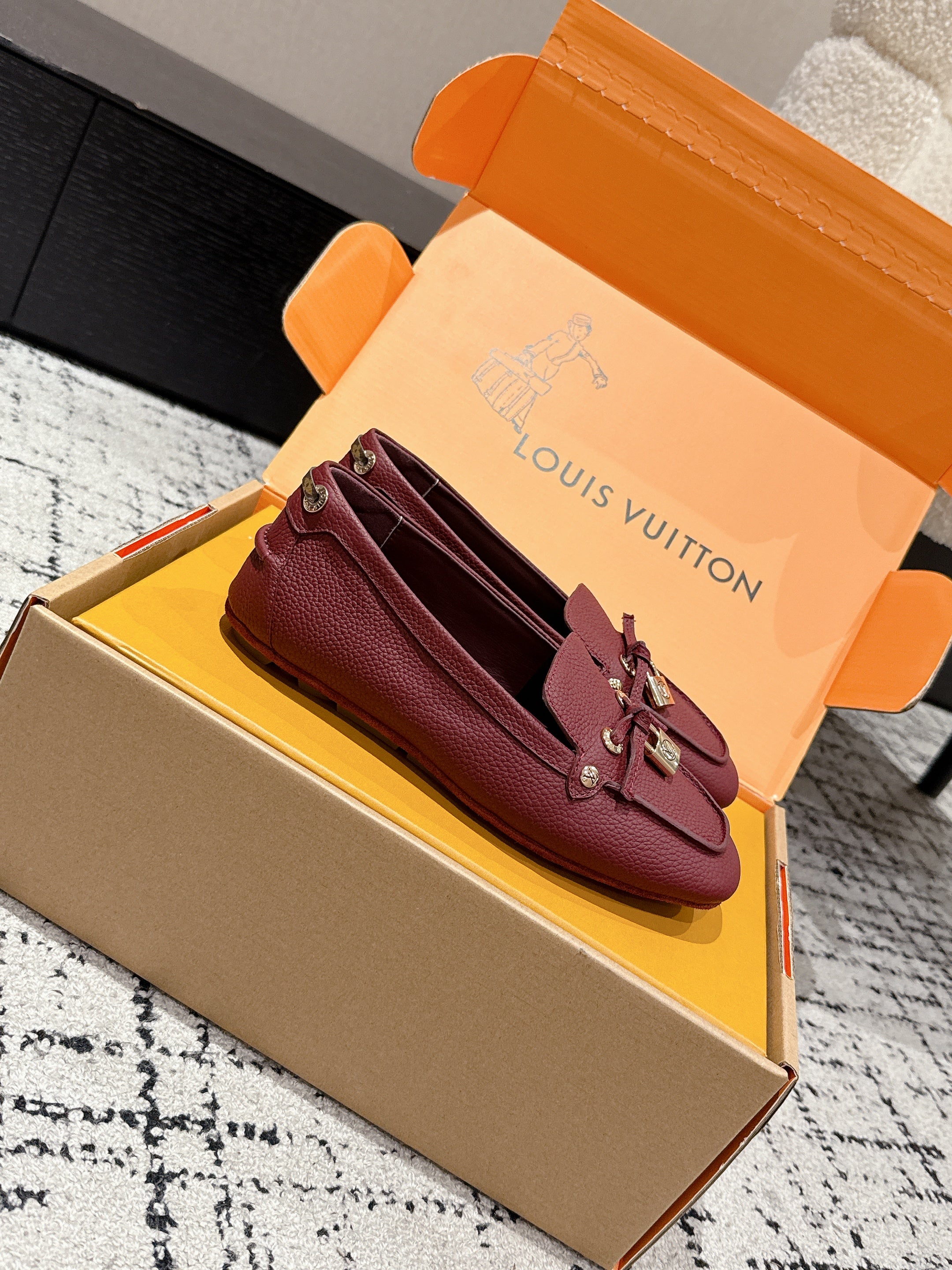 LV Flat-soled lock loafers burgundy cowhide 383376