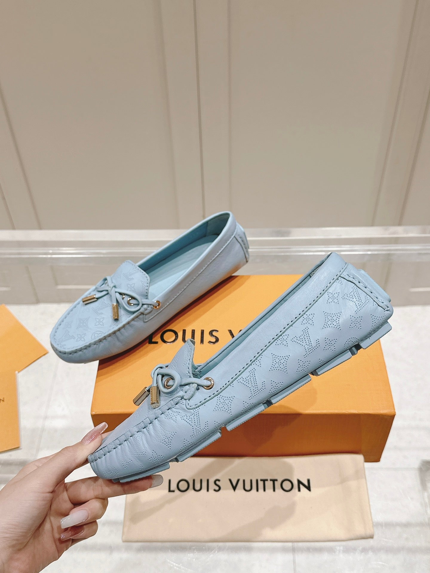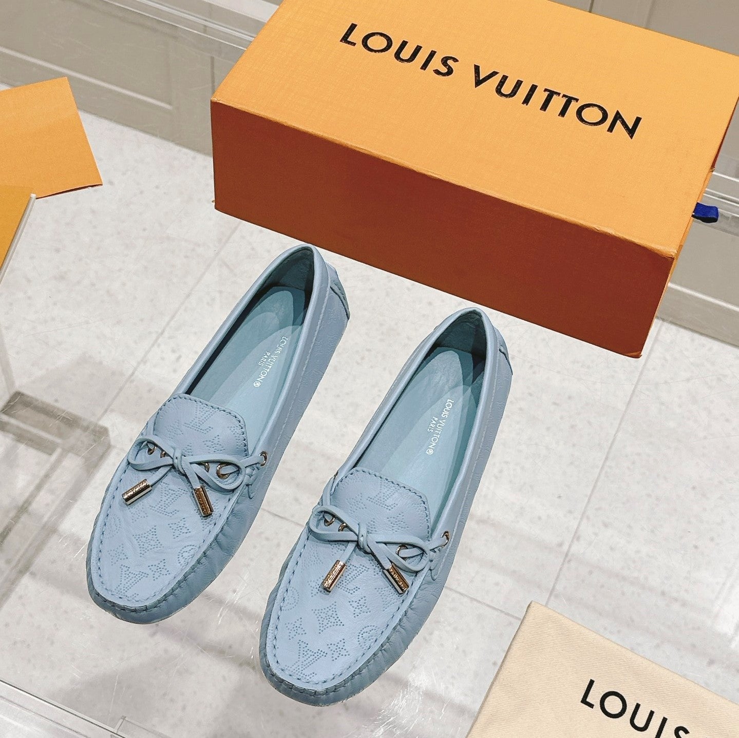 LV Gloria Loafer Light Blue Perforated Calfskin 480732