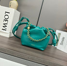 LOE 23 FLAMENCO PURSE BUCKET IN TEAL GREEN LAMBSKIN