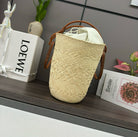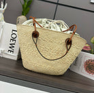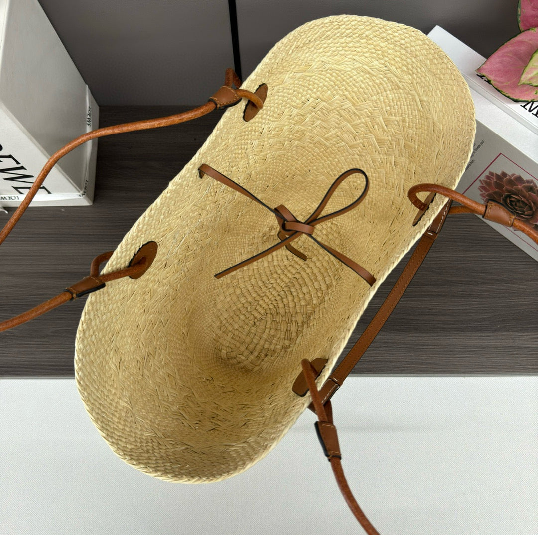 Loe Anagram Basket Bag 40x26.5x16cm Beige Raffia Brown Calfskin