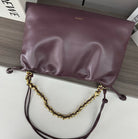 LOE LARGE 41 FLAMENCO PURSE BUCKET IN WINE PURPLE LAMBSKIN GOLD HARDWARE