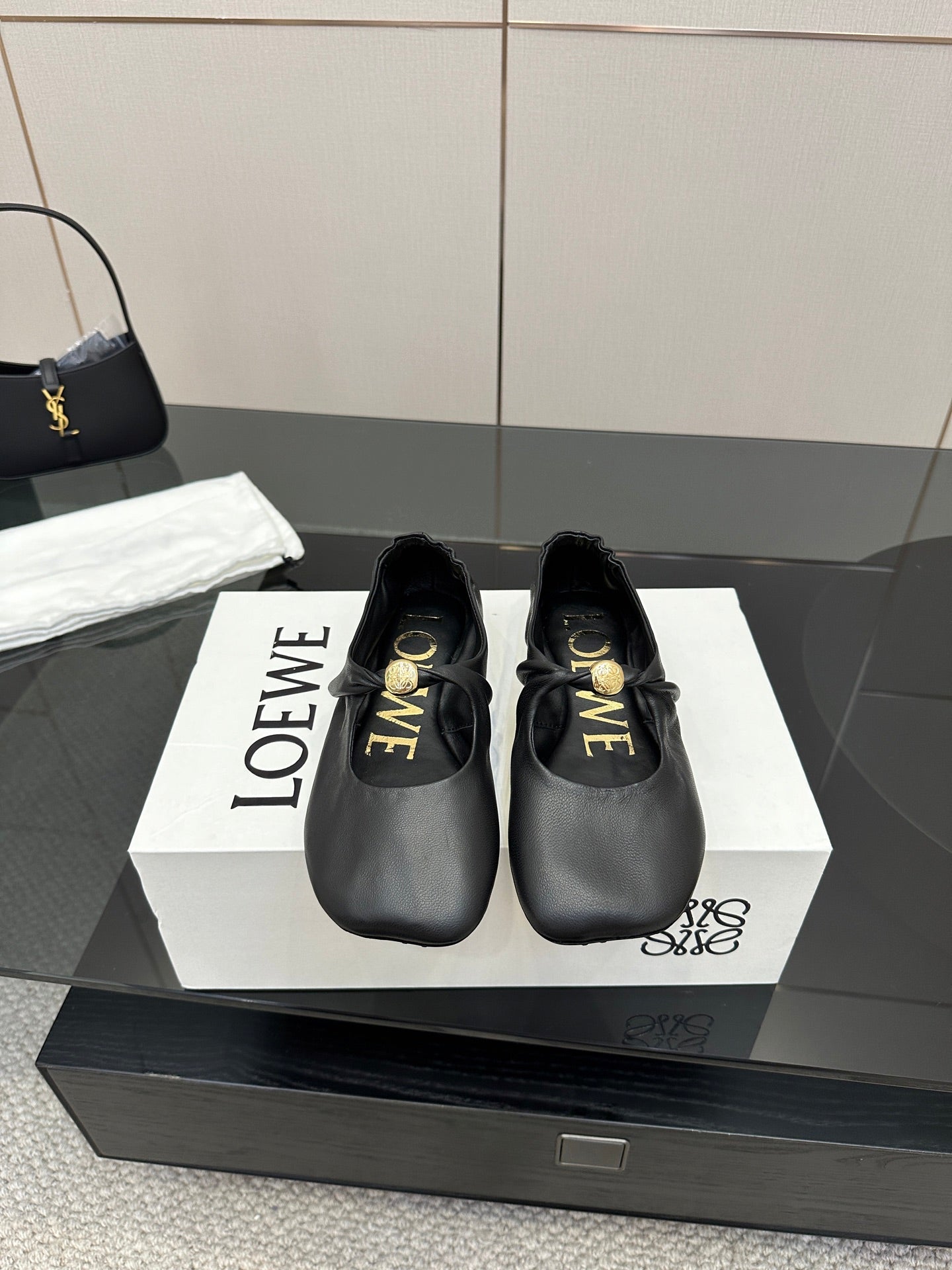 Loewe 25 Pebble Ballet Flats Black Calfskin
