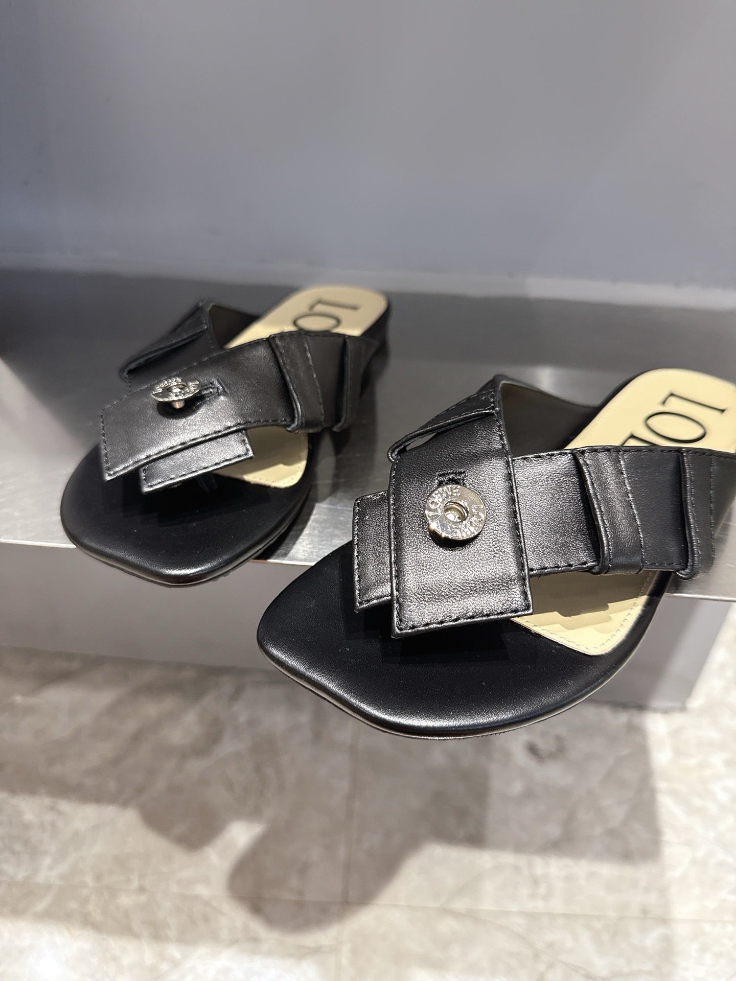 Loewe 25 Toy Panta Toe Thong Black Sheepskin