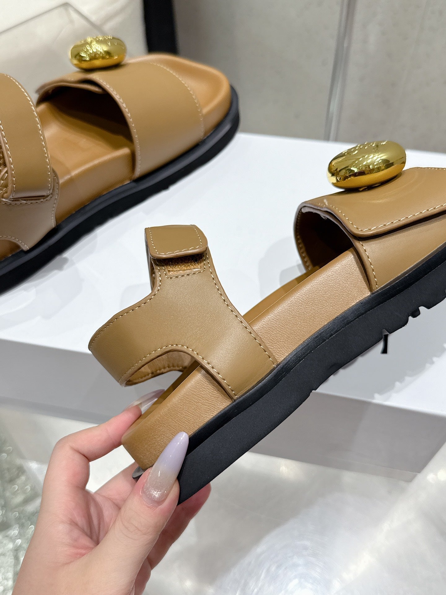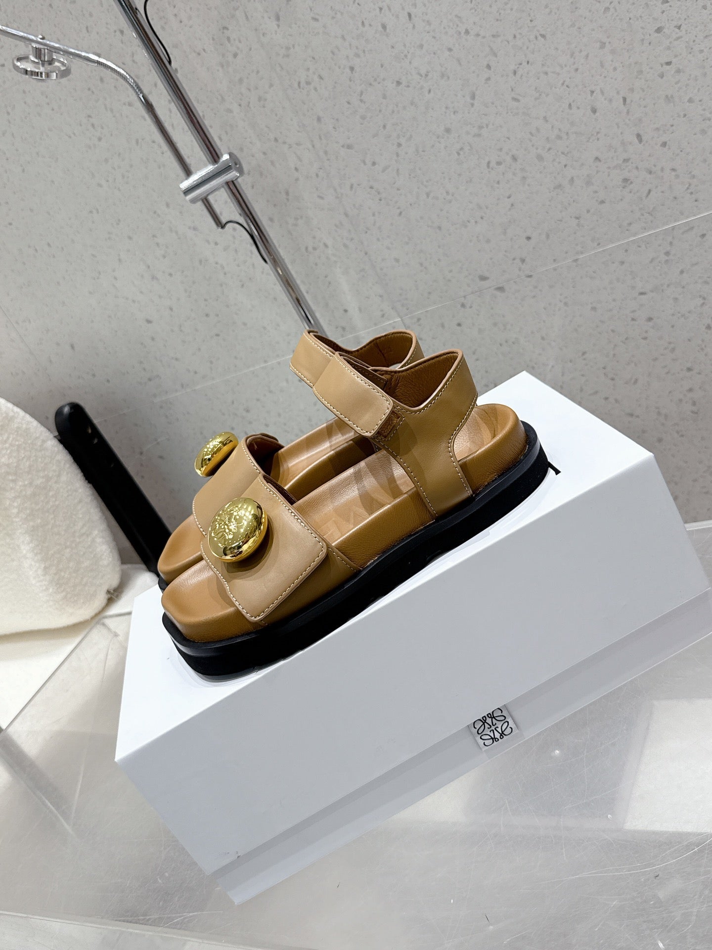 LOEWE 25ss sandals brown gold sheepskin