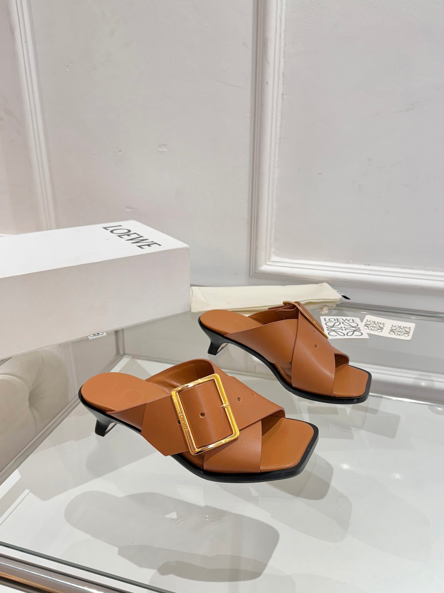 Loewe Petal Belt Mule Mahogany Brown Cowhide