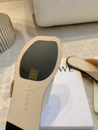 PETAL BELT FLAT SANDAL IN BEIGE CREAM CALFSKIN