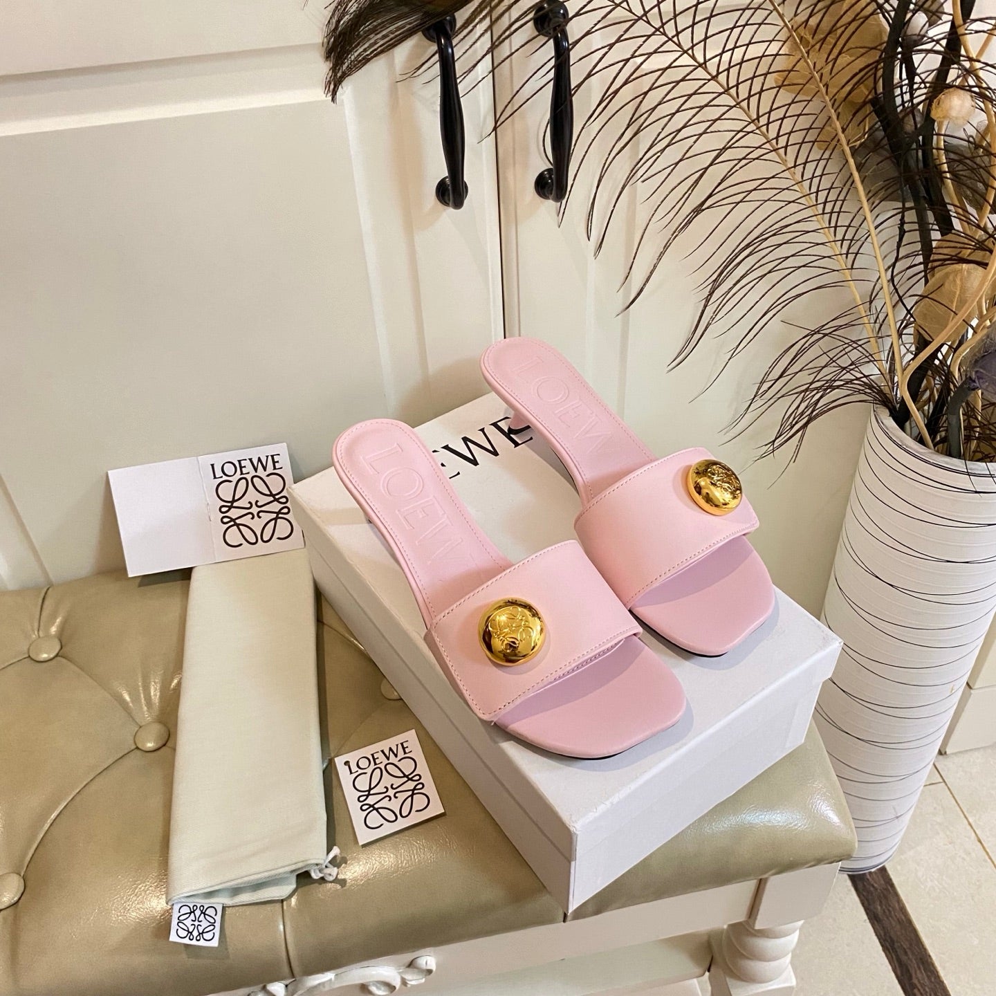 LOEWE 25ss sandals black gold sheepskin