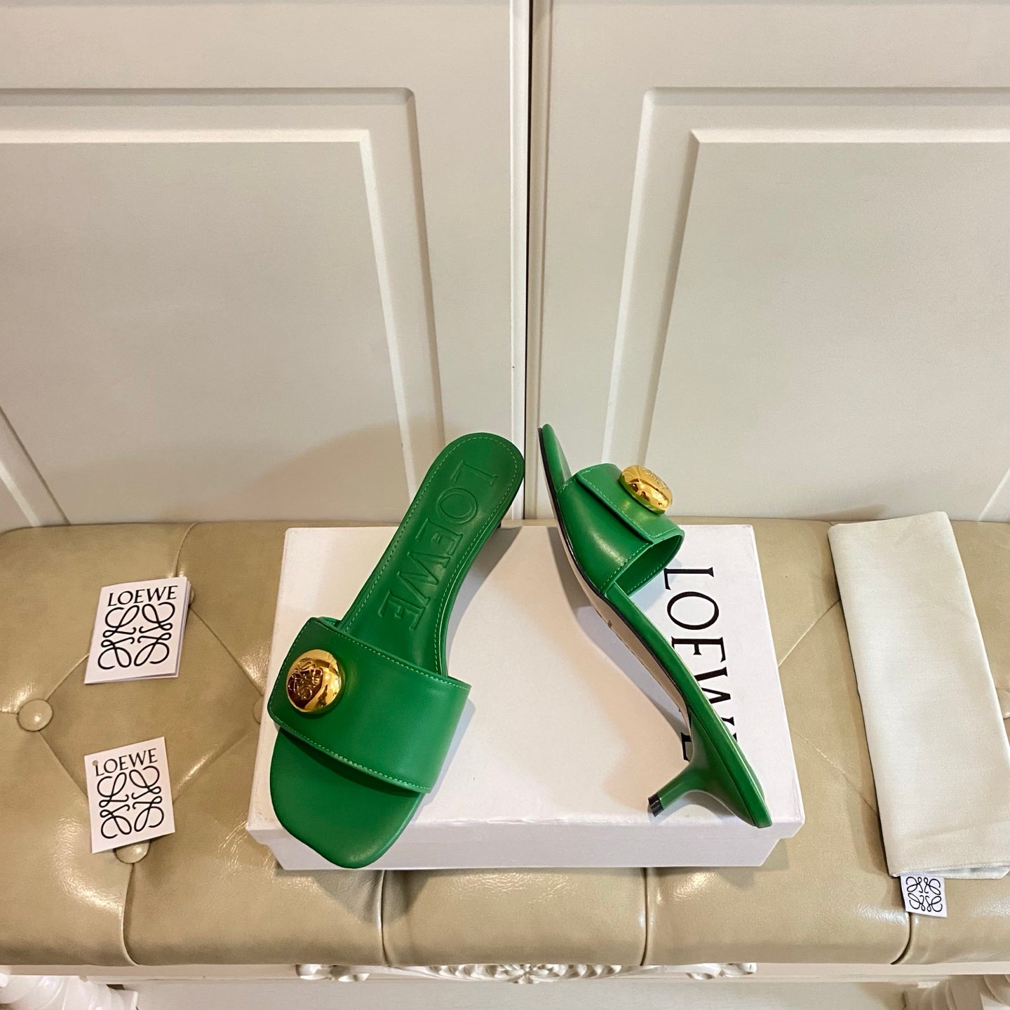 Loewe 25 flat slippers vibrant green calfskin
