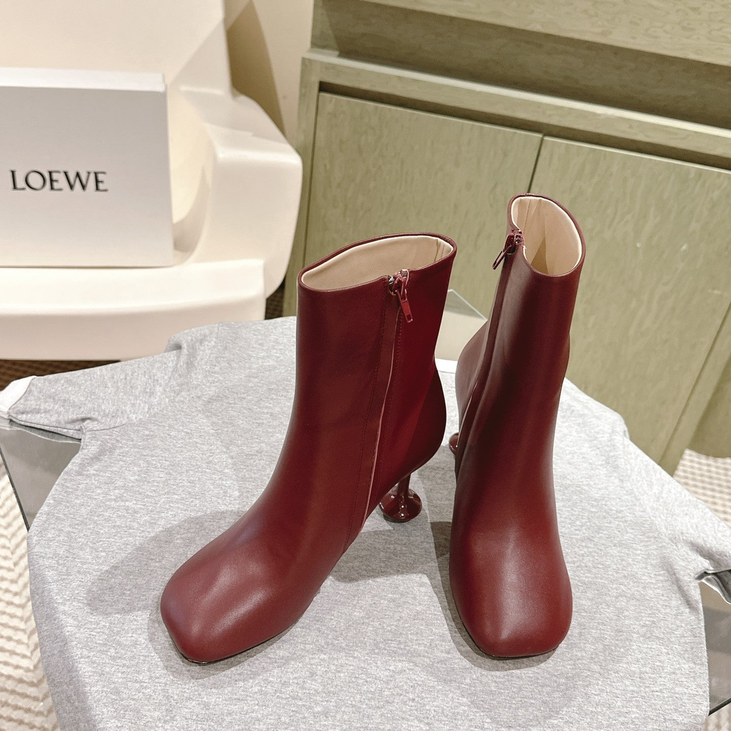Loewe Round-Toed Boots 85mm Burgundy Mixed Sheepskin 448451