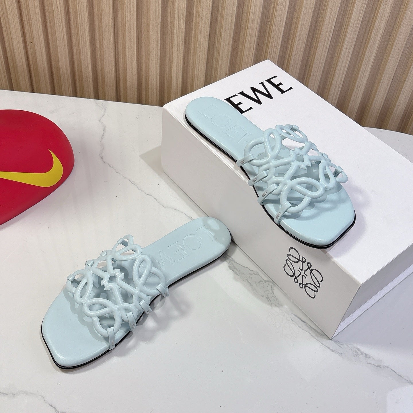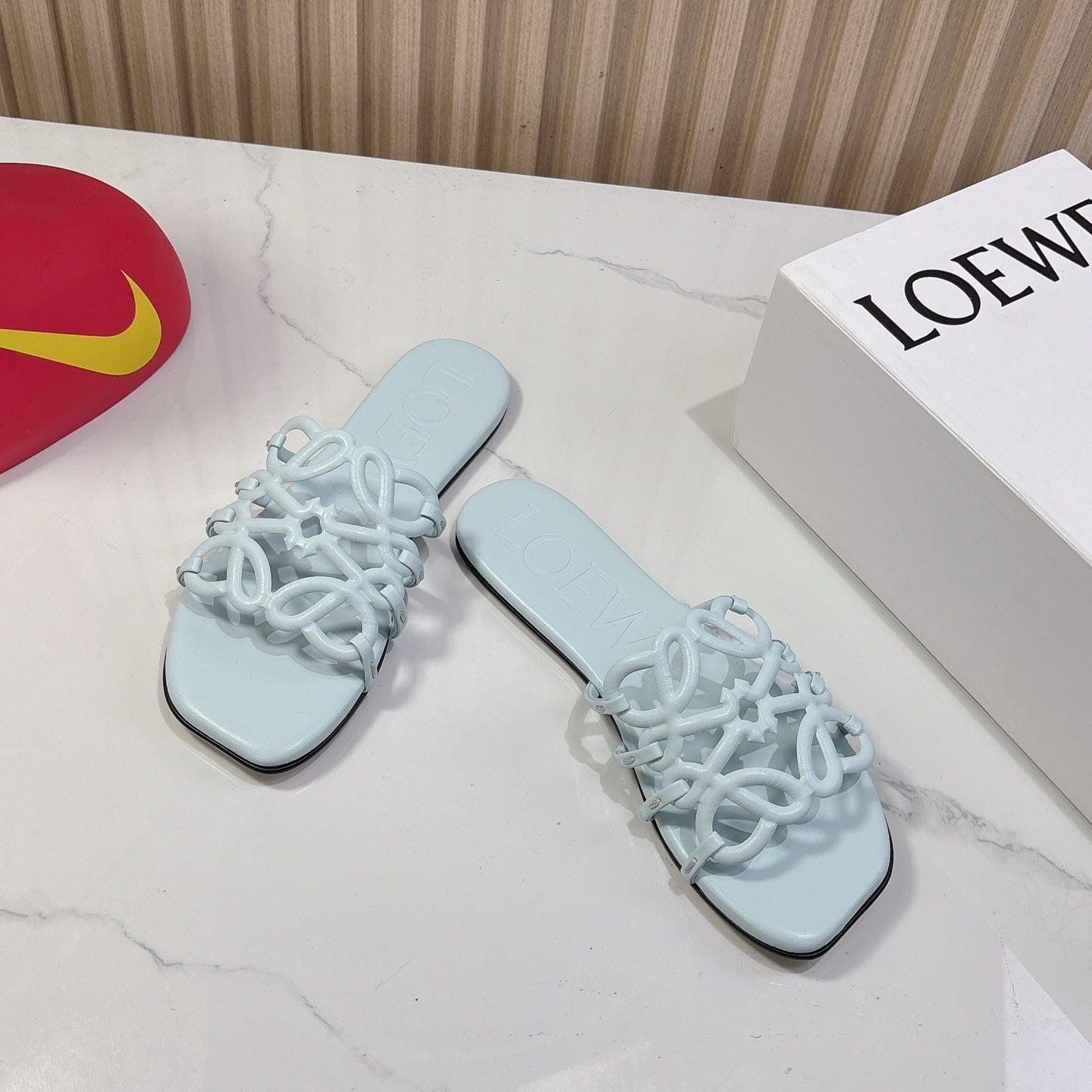Petal Anagram Slide in Sky Blue Soft Calfskin 273743