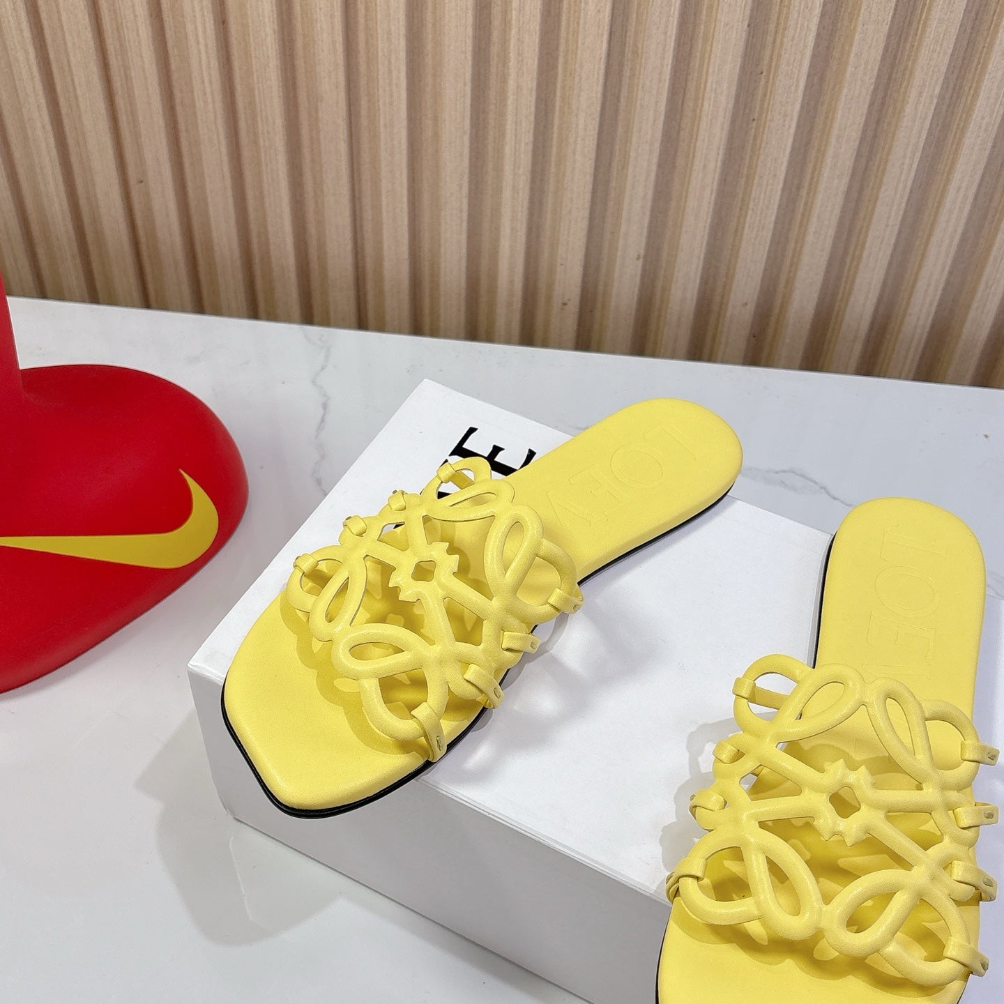 Petal Anagram Slide in Yellow Soft Calfskin 273742