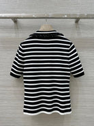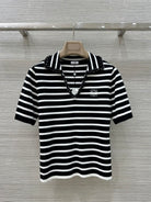 Loewe 25 Striped Knitted Polo Short-sleeved Top Black Tencel
