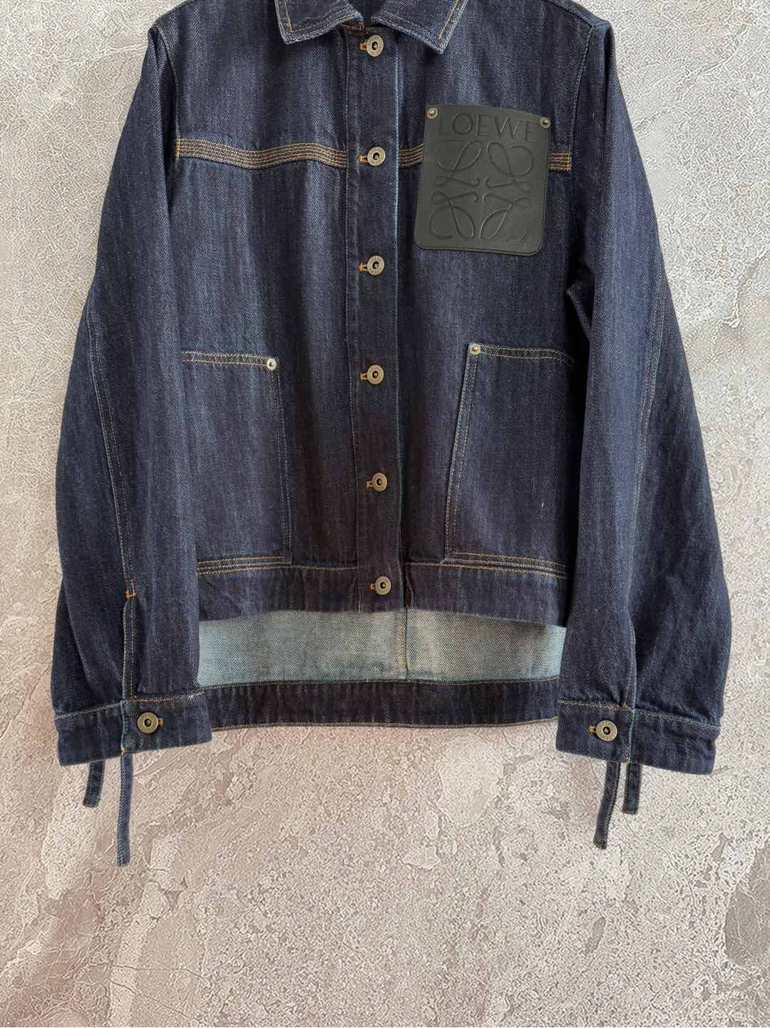 Loewe Pocket Leather Jacket Dark Blue Denim Cotton