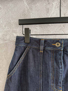 Loewe Pocket Leather Skirt Dark Blue Denim Cotton
