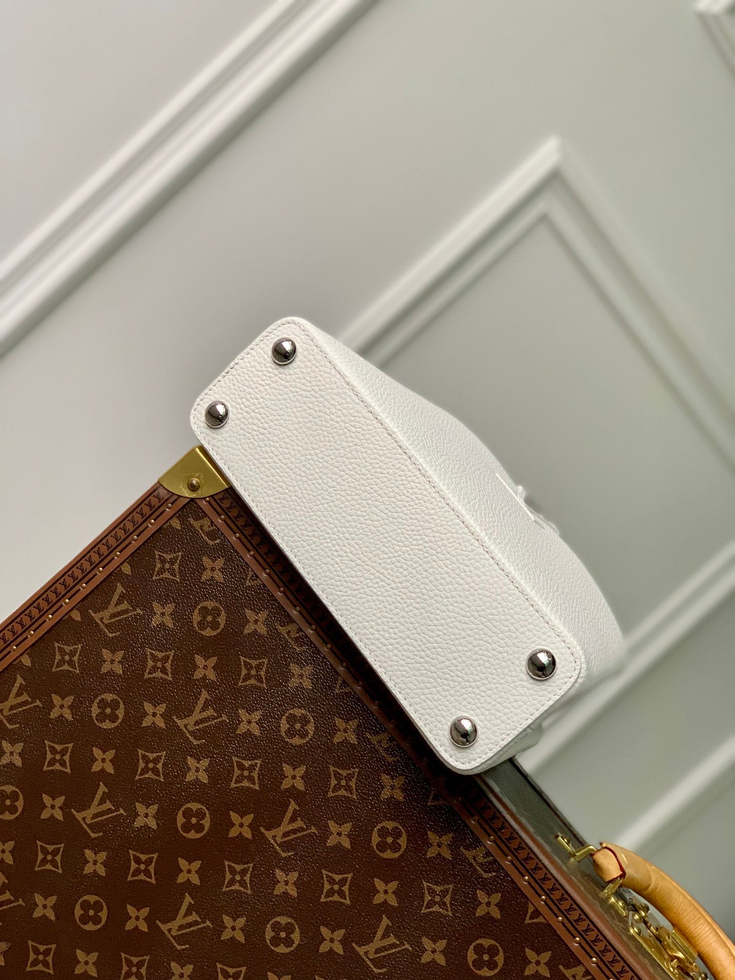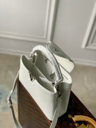 CAPUCINES BB 27 WHITE TAURILLON TURQUOISE SILVER HARDWARE