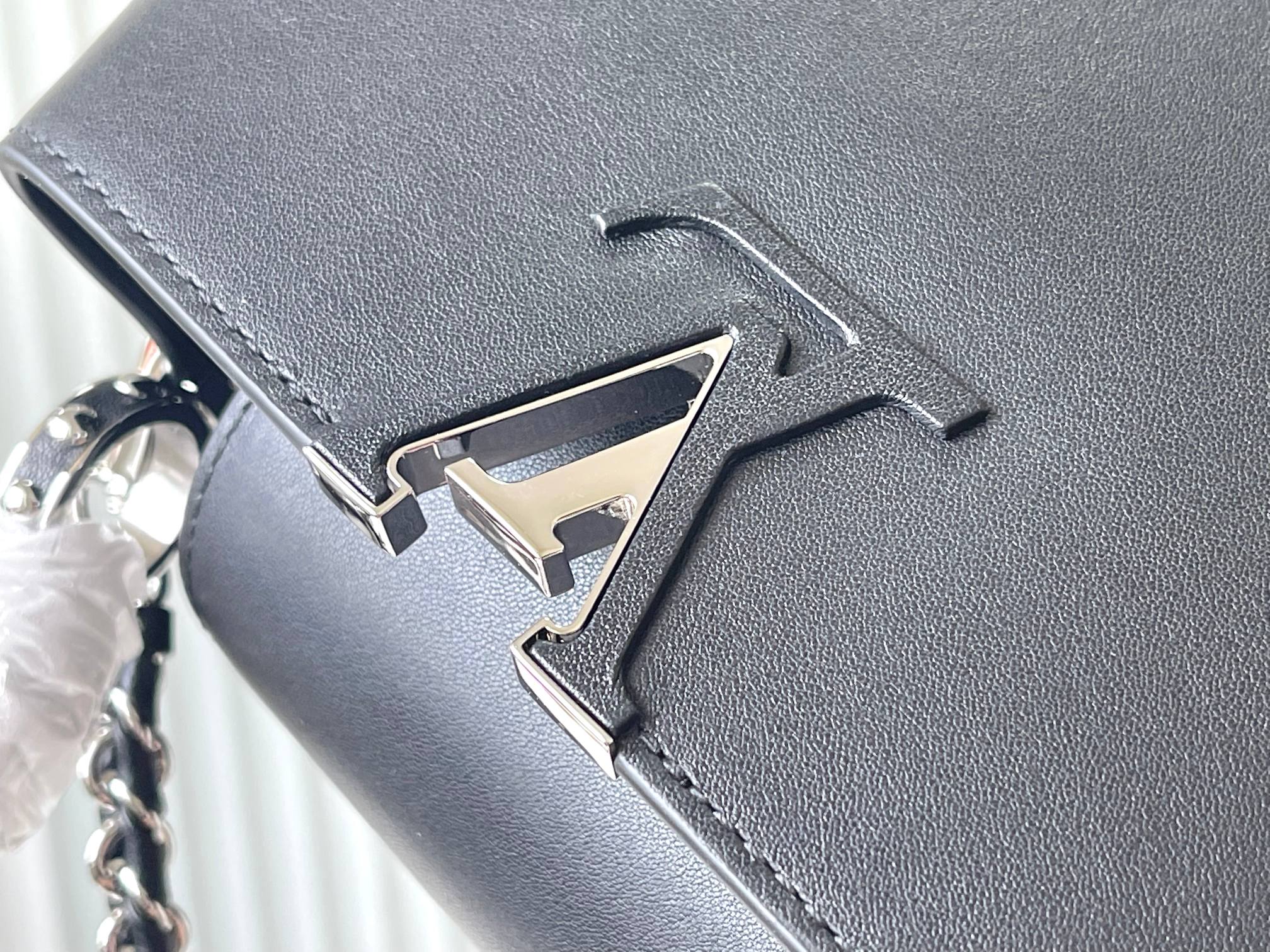 CAPUCINES EAST-WEST MINI 22 IN BLACK SHEEPSKIN CRYSTAL AND SILVER HARDWARE