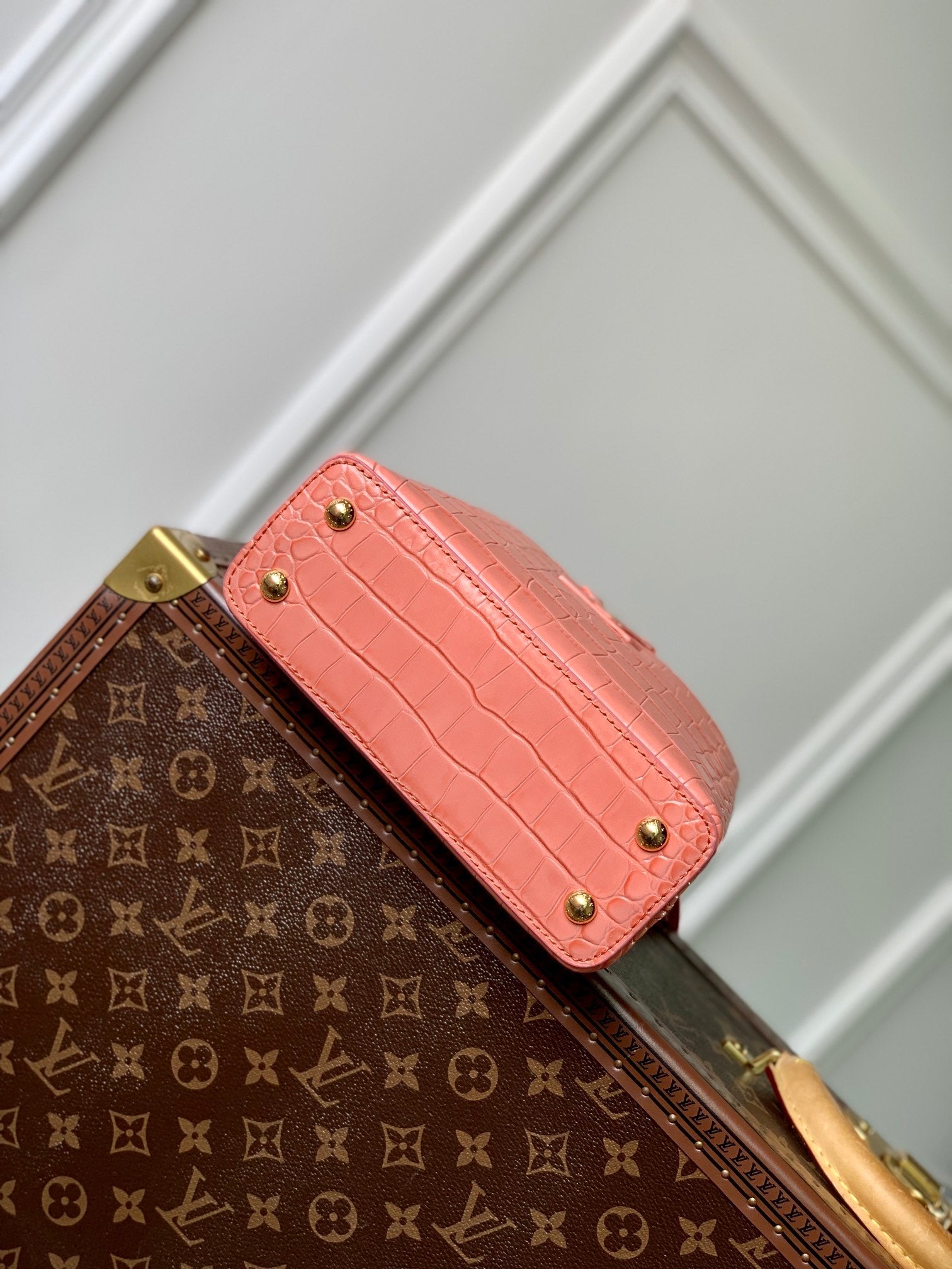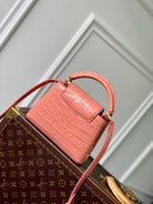CAPUCINES MINI 21 PINK ORANGE CROCODILE EMBOSSED CALFSKIN GOLD HARDWARE