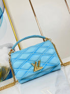 GO-14 MM 23 IN SKY BLUE QUILTED LAMBSKIN GOLD HARDWARE