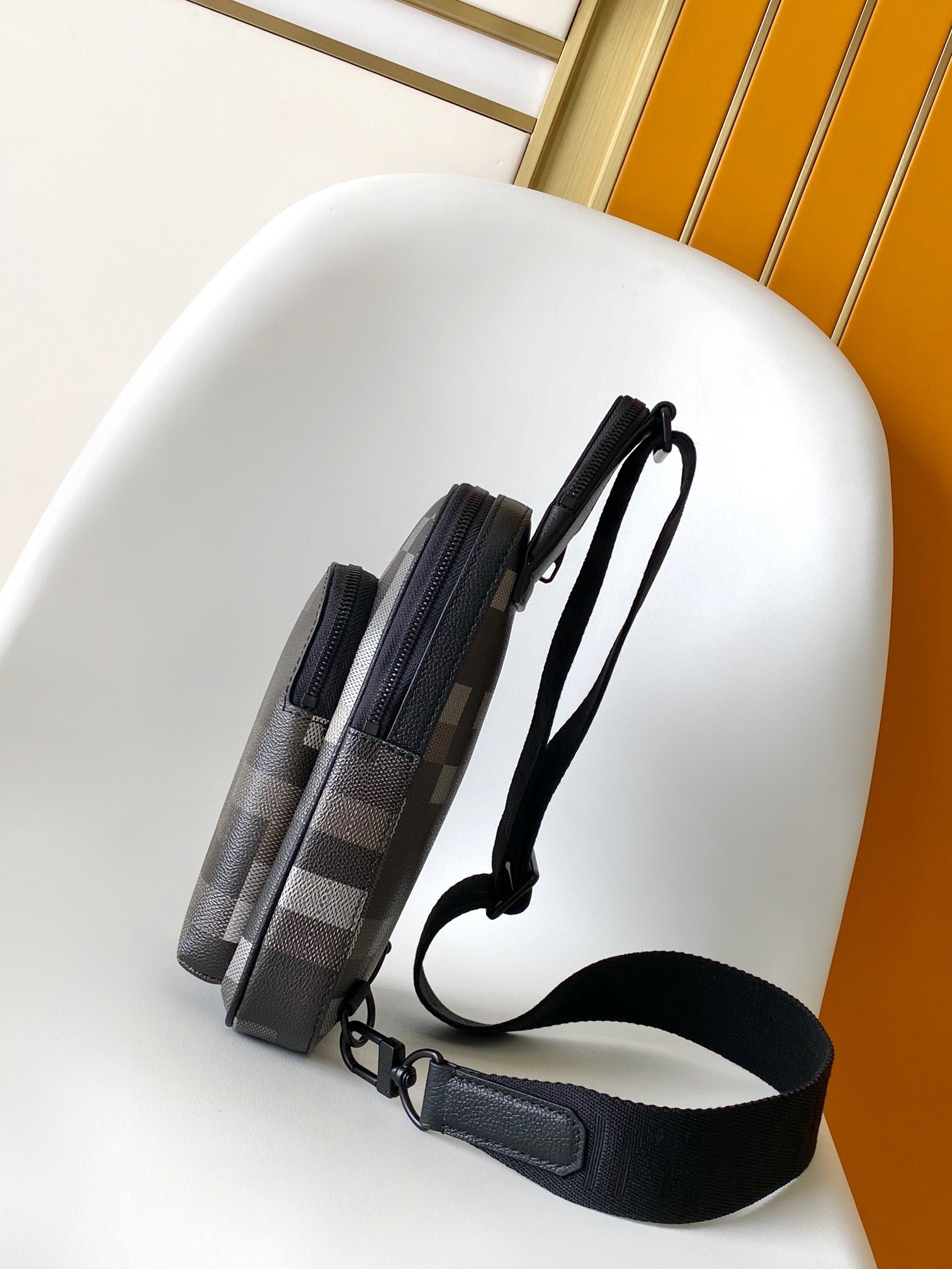 Lv Avenue Slingbag Black Damoflage Black Canvas- Black Metal