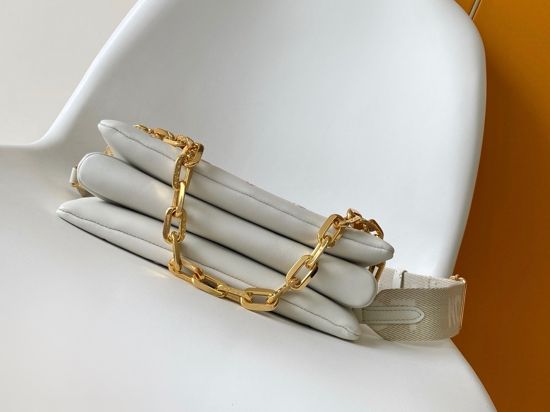 LV Coussin PM 26cm Cream Purple Monogram Empreinte Calfskin GHW