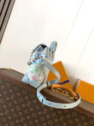 LV M13905 Nano Steamer Bag 15cm Solf Blue White Monogram Silver HW