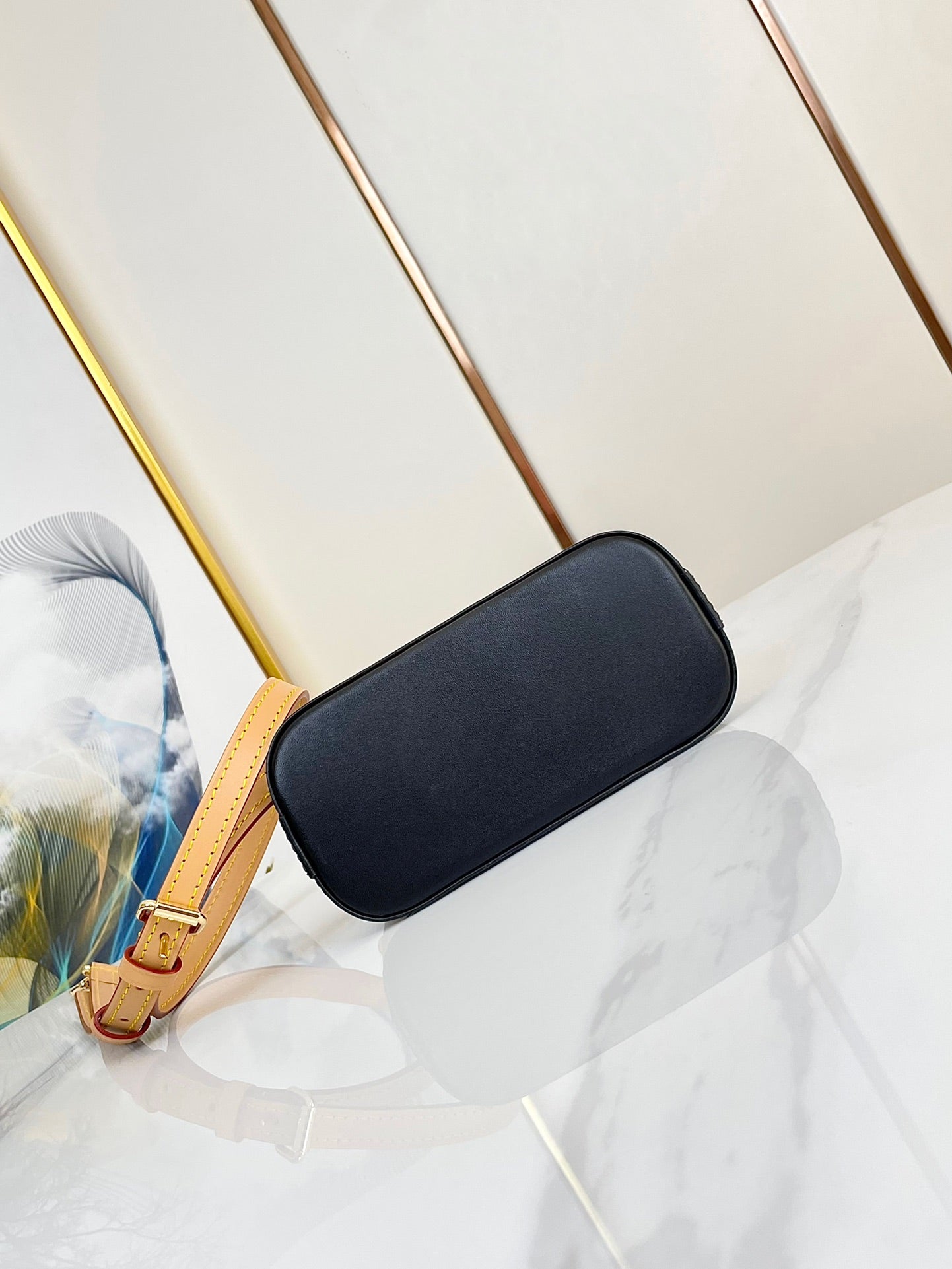 - Gold-color hardware
