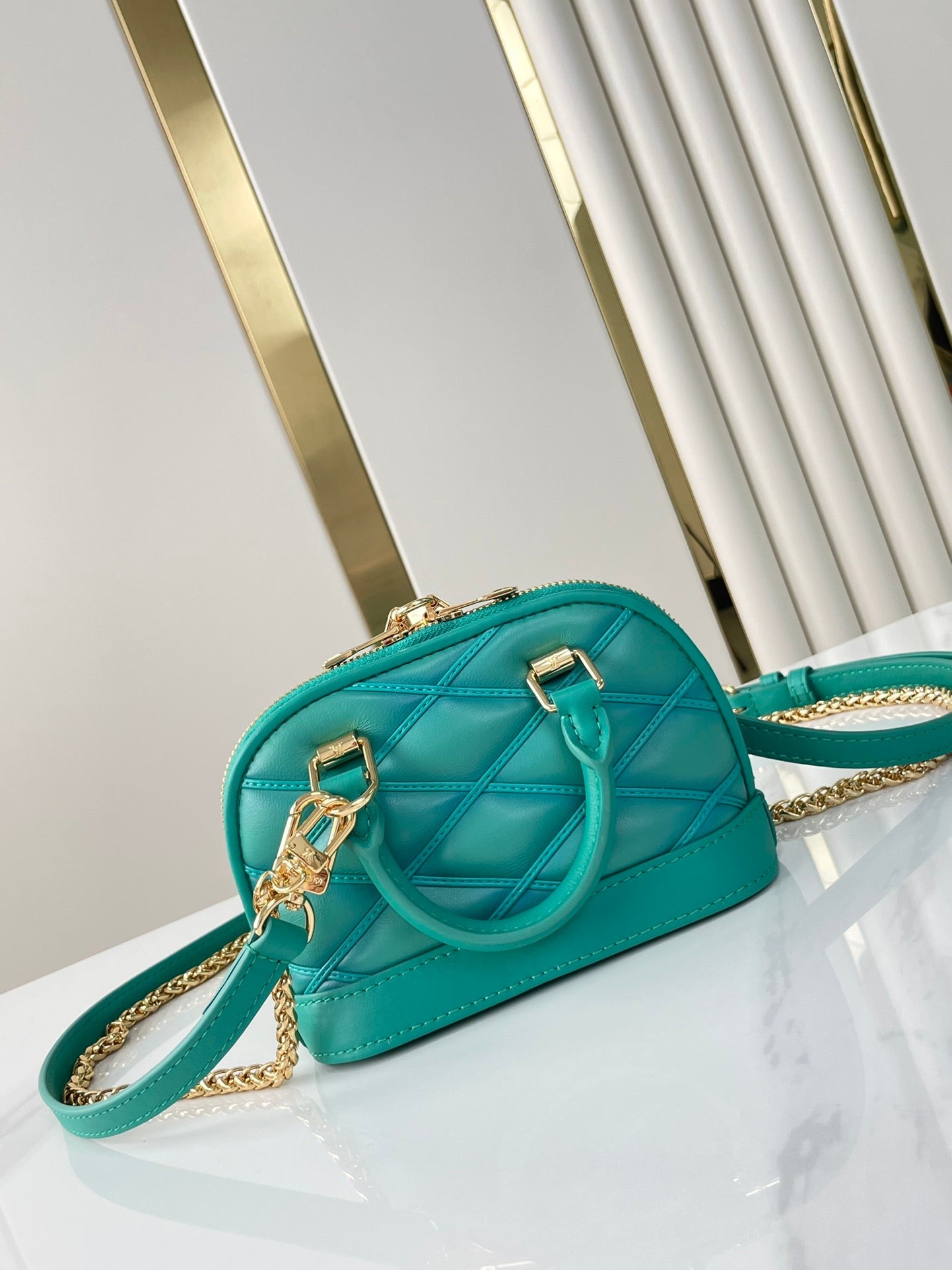 NANO ALMA 18 IN TURQUOISE QUILTED LAMBSKIN GOLD HARDWARE