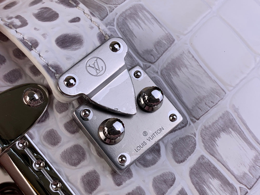 SLIM TRUNK 23 IN WHITE CROCODILE PATTERN CALFSKIN SILVER HARDWARE