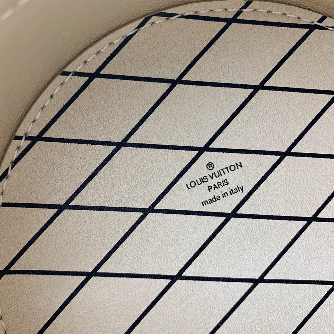 NANO NOÉ 16 IN WHITE PURPLE MONOGRAM EMBOSSED CALFSKIN