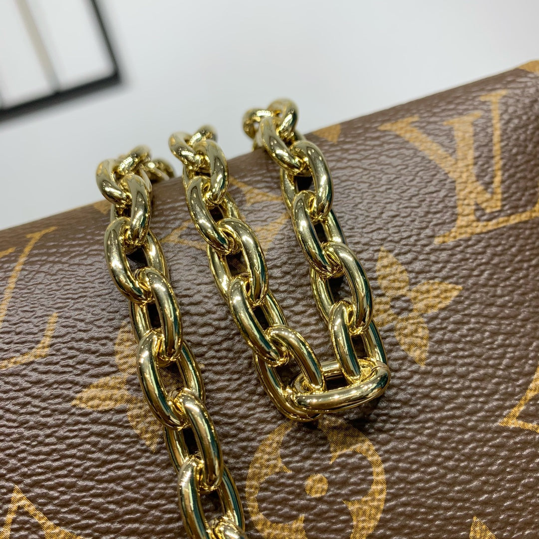 BLOOM POUCH 22 IN BROWN MONOGRAM CANVAS AND PASTEL YELLOW CALFSKIN SIDES