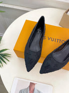 LV Gala Rhinestone Pointed Toe Flat Black Mesh 425136