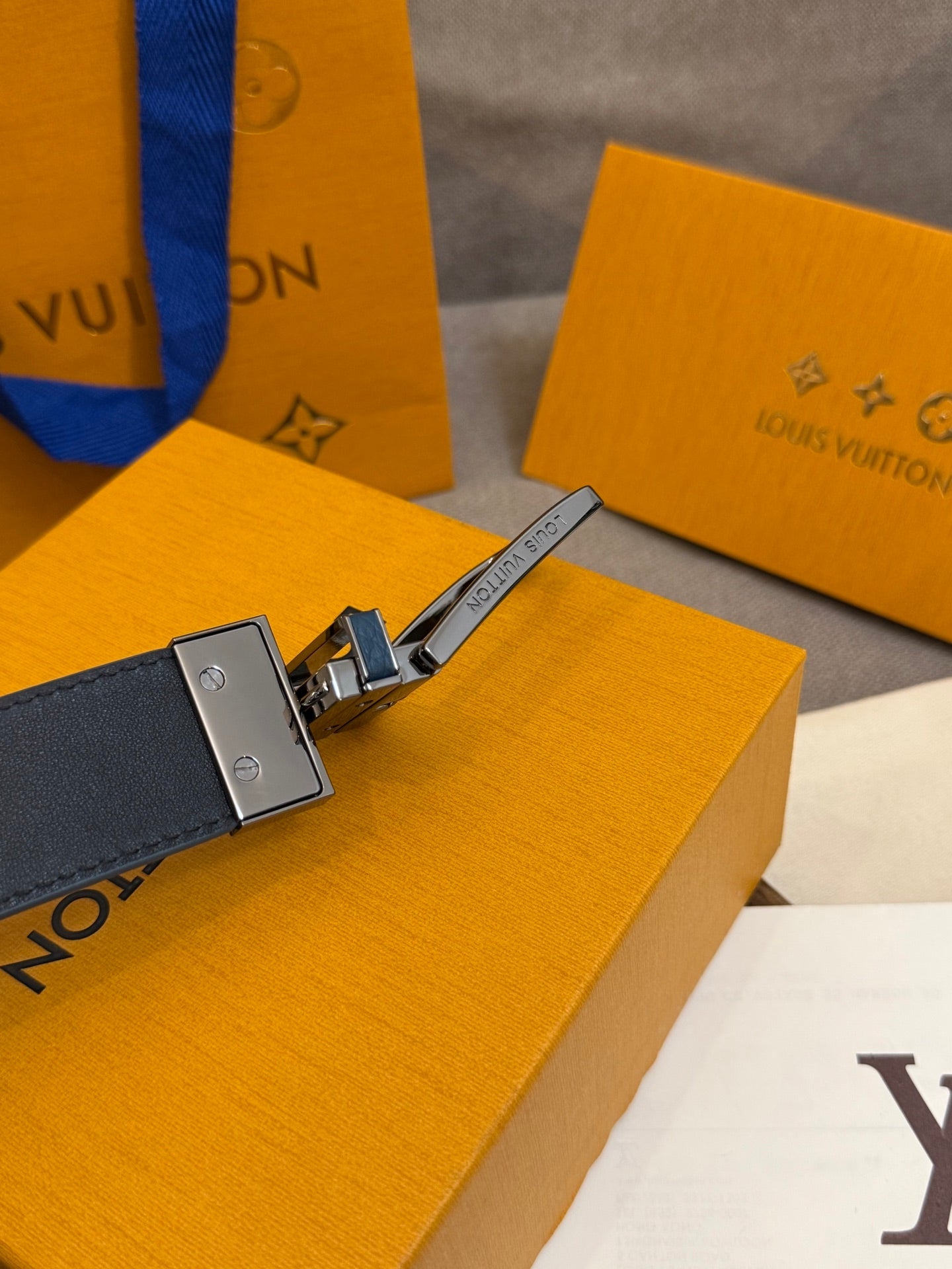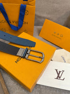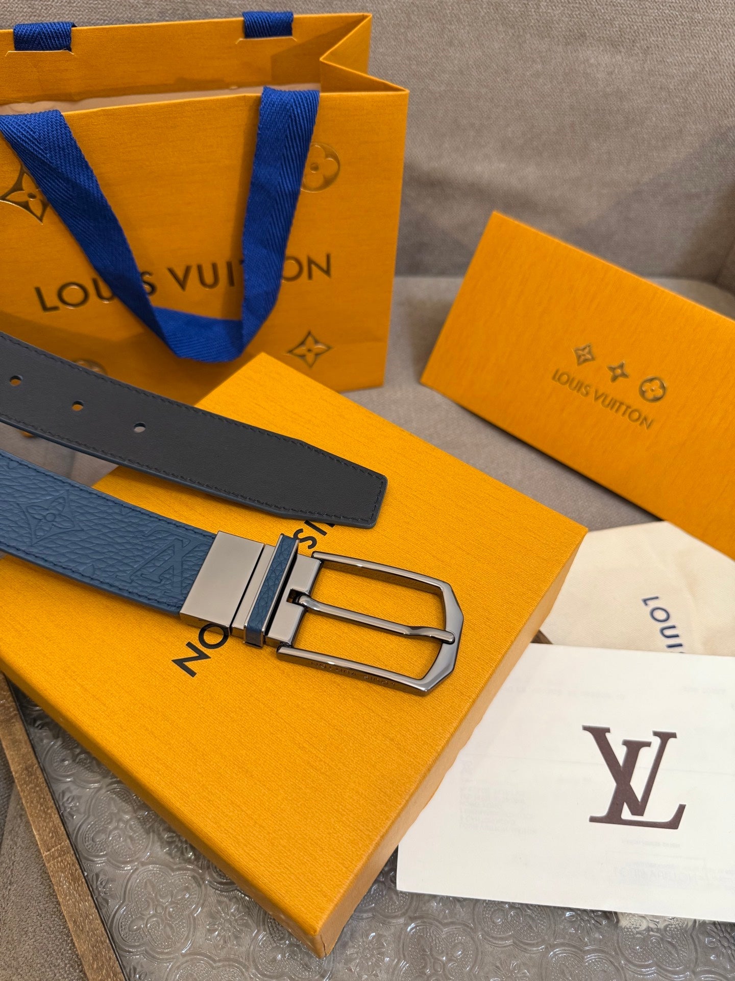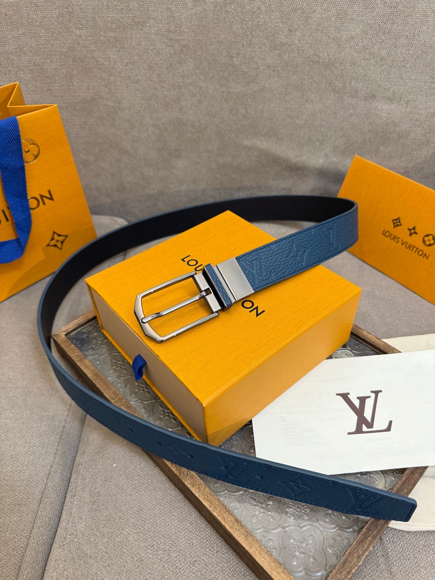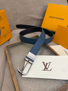 LV Slender Men Belt 35mm Deep Blue Embossed Monogram Leather Sliver HW