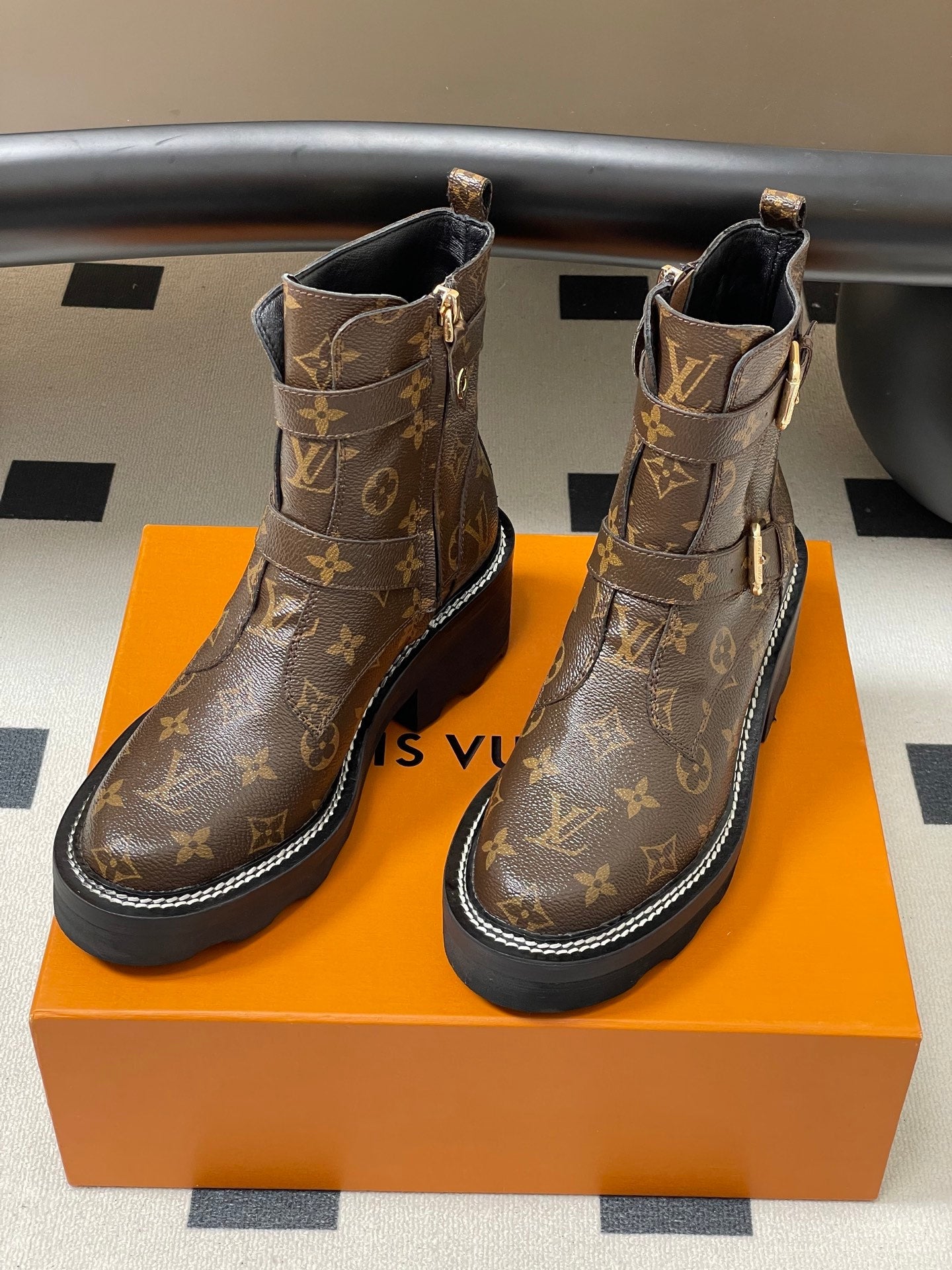 LV 1ACHQJ Beaubourg Ankle Boots 40mm Brown Monogram Canvas & Rubber 423365