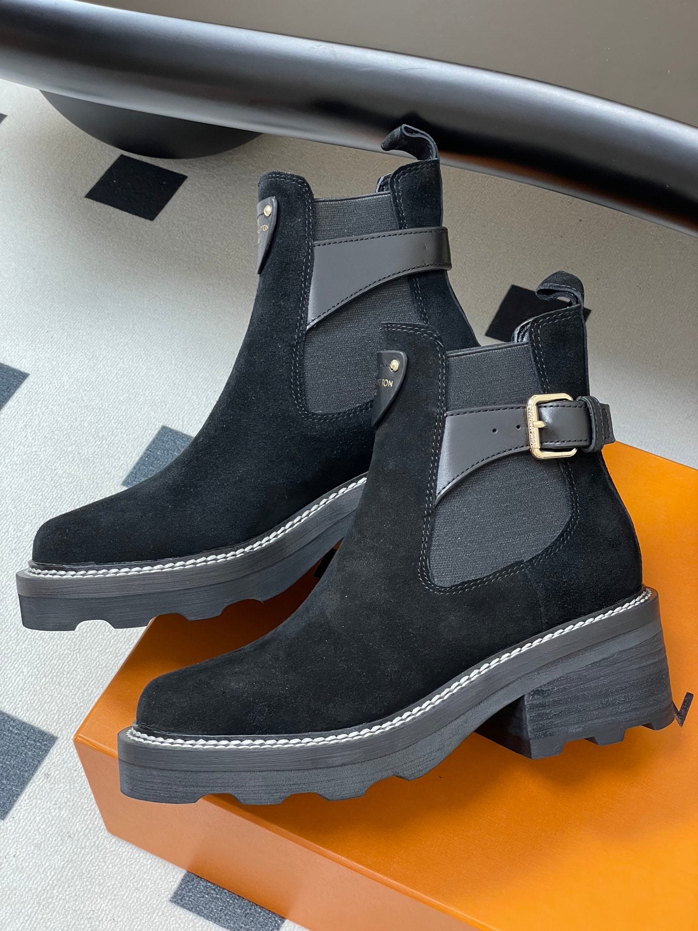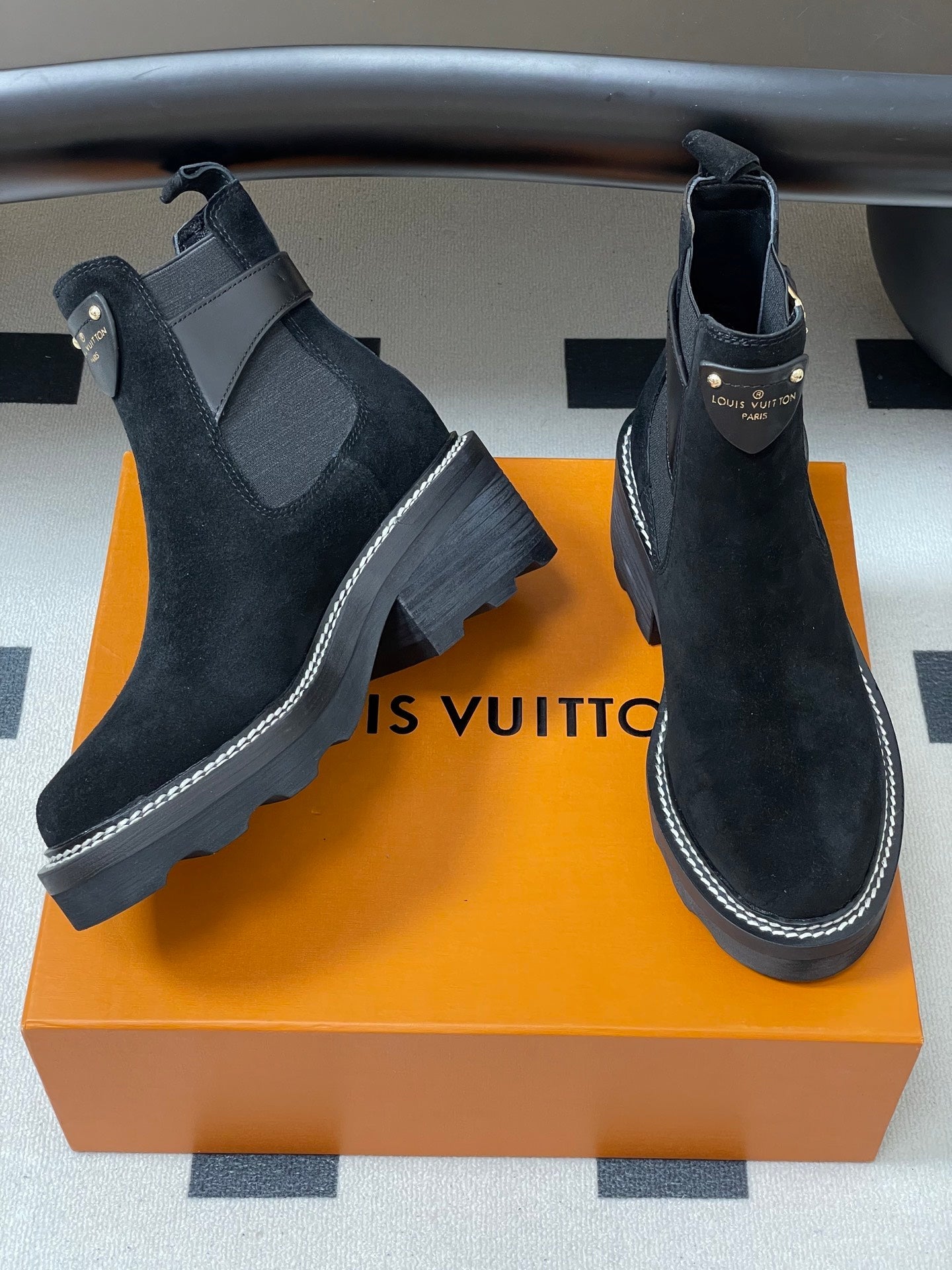 LV Triangle Logo Beaubourg Ankle Boots 40mm Black Suede & Rubber 423368