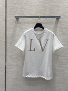 LV 25 Chain Round Neck T-shirt Black White Cotton