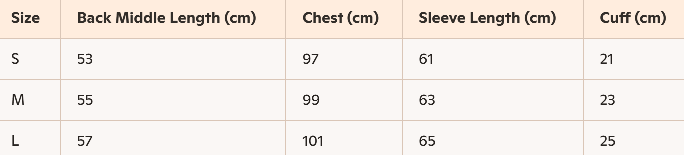 - Size: S, M, L