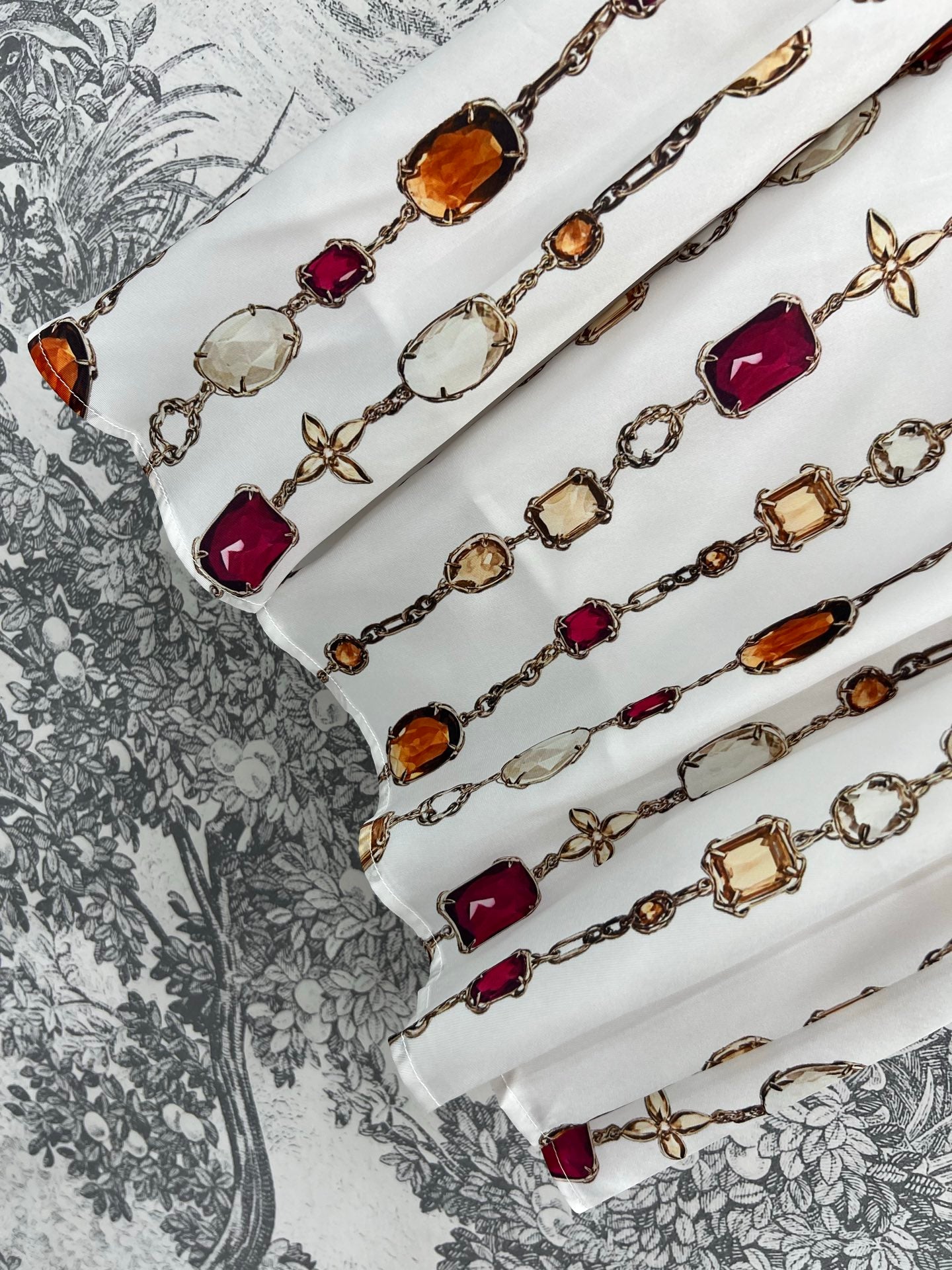 LV 25 Decorative Pattern Gemstone Chain Pleated Skirt White Poliester