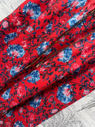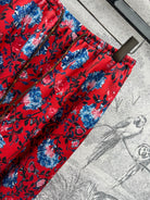 LV 25 Elastic Waist Old Flower Leather Skirt Red Poliester