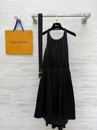 LV 25 Halter Neck Little Black Elegant Dress Black Cotton