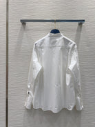 LV 25 Long Sleeve Mandarin Collar Shirt White Cotton