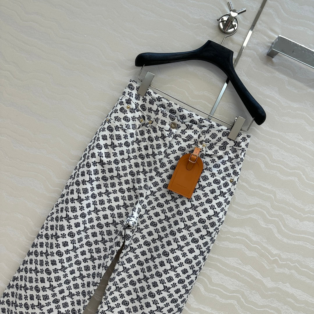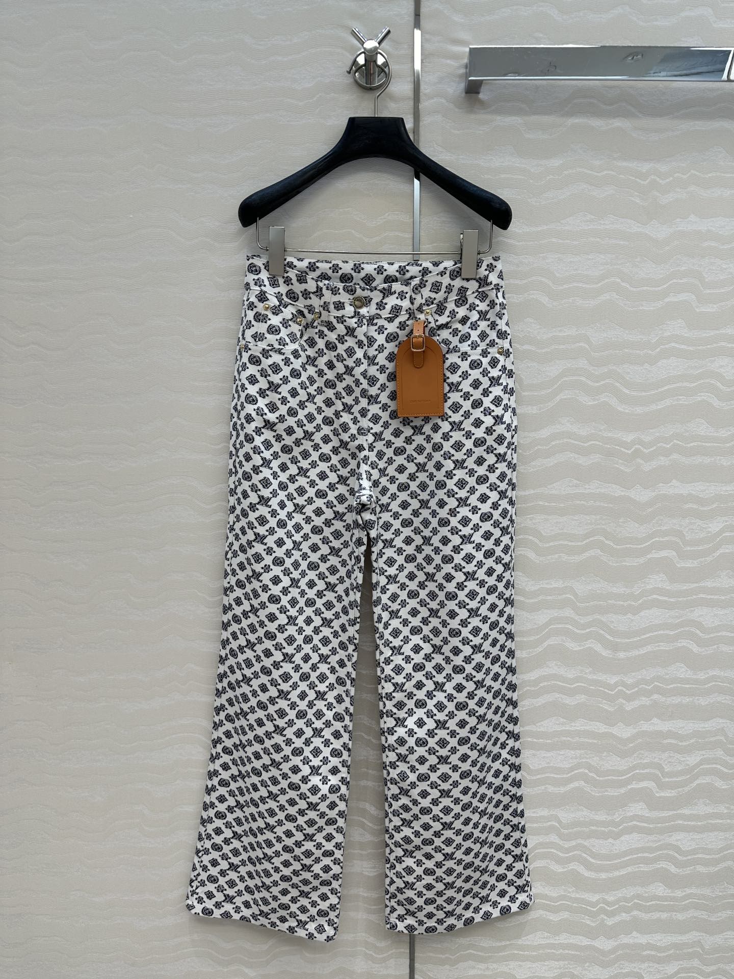 LV 25 Modern Logo Denim Pants Black White Poliester